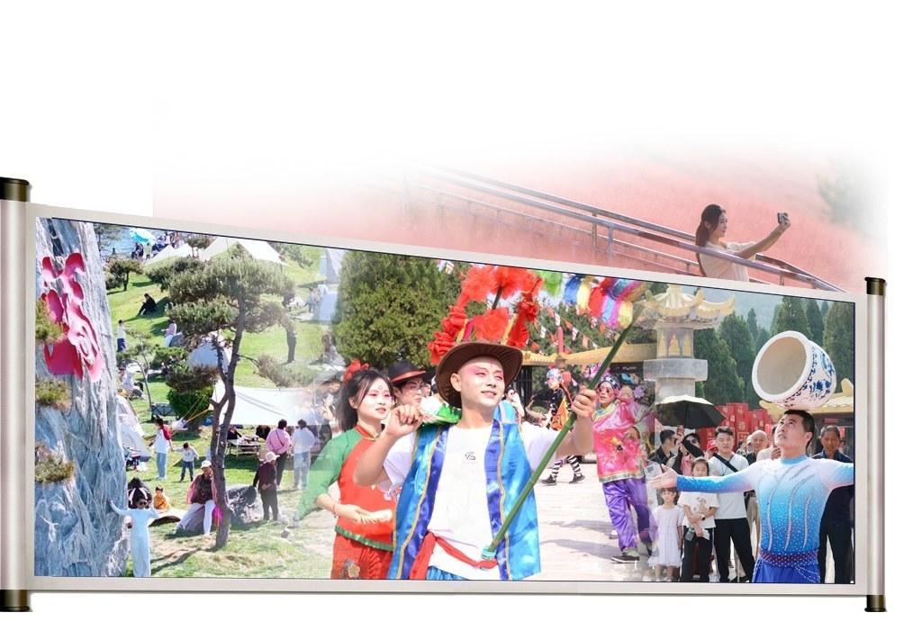 在龙口南山旅游景区,“红动南山·跟着国旗去旅行”系列活动贯穿始终。曲艺杂耍、国潮热舞快闪、川剧变脸、海阳大秧歌等表演轮番登场。中秋节当天,“中秋仙子月下送福”活动更添团圆温情,创意打卡墙则让游客轻松定格美好瞬间。